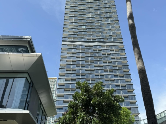 Arom Wongamat, a super luxury condominium project. Located on the last piece of land at Wong Amat Beach. Nearby are important places such as Terminal 21, Central Marina Pattaya, The Sanctuary of Truth and many others. At the same time, the project also comes with a beautiful design and inspiration from nature, combining design styles.