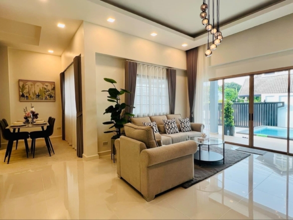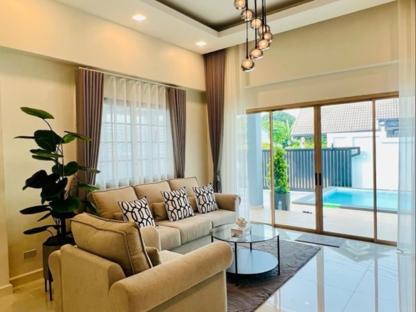 Hot Sale, single-storey detached house, beautiful house with swimming pool, fully furnished, 3 bedrooms, Price 5.99 MB.*