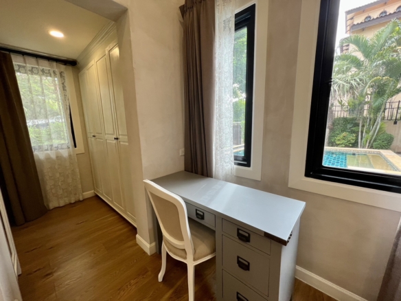 House for rent with swimming pool, Land size 106 square wah, 3 bedrooms, 4 bathrooms, fully furnished, Rent 70,000 baht/month.