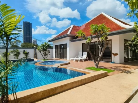 About Property Listing : House for rent, Land Size 105 Sq.W, 4 bedrooms, at Jomtien, Pattaya , With private swimming Pool, 4 Bathrooms with Jacuzzi bath in Master Bedroom, Fully Furnished, Close to Jomtien Beach only 1 km., Ready to move in, Rental price 65K/Month. Property Informations : 4 Bedrooms 4 Bathrooms with Jacuzzi bath in Master Bedroom Living Area 250 Sq.m Land Size 105 Sq.W Fully Furnished 6 Air conditions, 6 Ceiling Fans Living