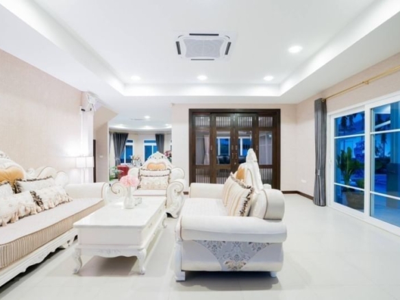 Pool Villa For Sale with Private Swimming Pool – Price 19 MB! Thung Klom Tan Man Rd. Land area 168 Sq.w. (672 Sq.m.) 6 bedrooms, 6 bathrooms, Full furnished, ready to move in! 𝐇𝐎𝐔𝐒𝐄 𝐃𝐄𝐓𝐀𝐈𝐋𝐒 𝐋𝐚𝐧𝐝 𝐬𝐢𝐳𝐞 : 168 Sq.w or 672 Sq.m 𝐥𝐢𝐯𝐢𝐧𝐠 𝐚𝐫𝐞𝐚 : 336 Sq.m 𝐁𝐞𝐝𝐫𝐨𝐨𝐦 : 6 Bedrooms 𝐁𝐚𝐭𝐡𝐫𝐨𝐨𝐦 : 6 Bathrooms 𝐂𝐚𝐫 𝐩𝐚𝐫𝐤 : 2 Cars park Living room with 2 kitchen 1 movie room, 1 dining room Fully furnished