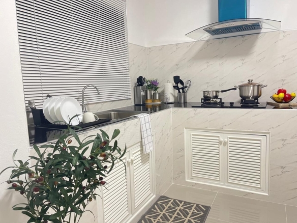 Single-storey detached house for sale, Price 3.09 MB!, Area 51 square wa, 2 Bedrooms, 2 Bathrooms, Fully furniture, convenient travel. 𝐇𝐎𝐔𝐒𝐄 𝐃𝐄𝐓𝐀𝐈𝐋𝐒 : Single-storey detached house 𝐋𝐚𝐧𝐝 𝐬𝐢𝐳𝐞 : 51 Sq.w or 204 Sq.m 𝐥𝐢𝐯𝐢𝐧𝐠 𝐚𝐫𝐞𝐚 : 102 Sq.m 𝐁𝐞𝐝𝐫𝐨𝐨𝐦 : 2 Bedrooms 𝐁𝐚𝐭𝐡𝐫𝐨𝐨𝐦 : 2 Bathroom 𝐂𝐚𝐫 𝐩𝐚𝐫𝐤 : 1 Cars park – Free complete furniture (except decorations) – Curtains – 1 living room air conditioner – Free kitchen set, gas stove, smoke detector