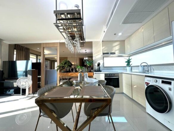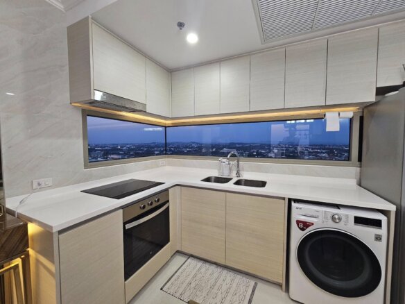 The Riviera Jomtien, a luxury condominium. Special design and has a unique identity from KTGY with a modern architecture Mixed between classic and luxury. Enjoy the peaceful atmosphere. Ready to see the beautiful scenery of Jomtien Beach from the rooftop and rooms facing into Direct sea view up to 80%, comfortable with amenities.